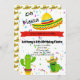 Fiesta Time! Fira en födelsedag med ett fiestamexikantema. Denna färgrika inbjudan har en stor sombrero på det bästa med kaktusen på grunden. Personifiera med din information om partyet.