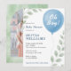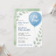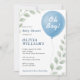 "Åh Pojke" Blå Ballong Eukalyptus FOTO Grönska Bebis Shower Inbjudan | Personlig Bild & Modern Bebis Pojke Inbjudan