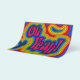 Flyer med Oh Yeah! med psykedeliska förskjutningsvirvlar i regnbågens färger