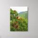 Fotografi från Tantalus, Oahu. Det finns inhemska blommar av ohia lehua i förgrunden.