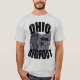 Ett grymge stil Ohio karta med Bigfoot-fotavtryck av konstnären/designern Charmaine Paulson på en (någon) t-shirt. T-shirt har texten Ohio Home of Bigfoot. ©2012charmainepaulson