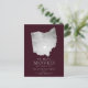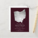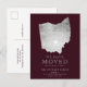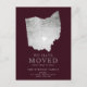 skicka dina nya adress till vänner och familj med den moderna burgundi och silver-folie karta i delstaten Ohio med modern typografi. Perfektens flytta. Flytta hjärtat till din plats.