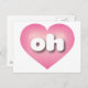 Det här vykortet har ett rosa hjärta med ett vitt tvättat centrum som innehåller det rundade vita nedre brev oh, en lekfull förkortning för Ohio, det låsande ögonläget. Baksidan av vykortet är tom och väntar på dina handskrivna känslor eller anpassade texter.