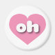 Den här magneten har ett lugn, coola rosa hjärta som innehåller det feta, vita, rundade, nedre fodral brev oh, en lekfull förkortning för Ohio, låsögonläget.