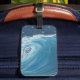 Dark blue oil pastel print of a giant wave crashing in the ocean- luggage tag