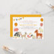 Oink, moo, kuk-a-doodle-doo! Vi vill fira med dig! Ett roligt till inbjudan vänner och familj till ditt barns födelsedagsfest. Den här gender-neutralt-utformningen är perfekt för små pojkar och små flickor i alla åldrar! Framsidan har rosa gris, en ko, en åsna, en cockerel, två chickar, ett får, en häst och en billy get! Det finns ballonger och buntar och små tuftar av gräs. Kort som går tillbaka till senap gult färg med vit prickad mönster.
