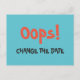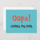 Oj, byt datum kort att skicka om ditt bröllopsdatum måste ändras och era Spara datum-kort redan har skickats ut. Roliga typsnitt på framsidan och byt bakgrundsfärg om du vill. Informationstexten på baksidan är helt redigerbar, byt till din egen info. Detta kan också redigeras för att användas för andra evenemang än bröllop, all text kan ändras.