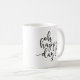 Ett underbart motiverande mugg med frasen "oh lycklig day" i mönsterteckensnittet stil i svart skrift.