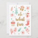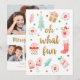 En lekfull julkortdesign med flera bilder och meddelandet, Oj så kul. Den är dekorerad med vackra illustrationer av presenter, handskar, en julstrumpa och ett julgran. Personifiera det med ditt familjefoto, ditt familjenamn och ett semsterhälsning. Designad för dig av Blackberry Boulevard.