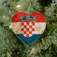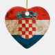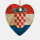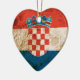 Flagga av Kroatien göras till den åldrades looken och kraftfullen. Busestrukturer täcker flagga som ger denna prydnad en grungy känselförnimmelse. Denna trasiga kroatiska flagga är en roligt och en snyggt långt som visar din patriotism.