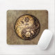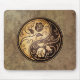 Denna buse- och kraftfullyin yang som designen presenterar två, stylized stam- ro. Invecklat virvlar runt dekorerar båda sidor av detta traditionella symbol som skapar ett delikat mönster. De två blommorna flödar från grunden av teardropen på antingen sida med löv som växer från stemsna. Busen texturerar, och naturliga bruna färger ger designen looken av att vara en forntida artefact. Denna unika yin yang gör bedöva och en stilfull mousepaddesign.