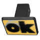 Den här designen har den fetstilta "OK"-texten, skapar ett påstående med enkelhet och stil. Perfekt för bära och tillbehör