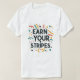 T-shirt-designen innehåller texten "Earn Your Rand" i ett lekfullt teckensnitt med färgstarka rand och prickar. Konstruktionen är vibrerande och öga och texten är lätt att läsa.