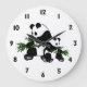 Panda mamma äter bamboo medan baby gör som baby panda ser