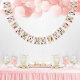 Bröllop-möhippan "Bride to Be"-banderoll har blommigtarna vattenfärgsdesign med ro, dahlier, blommor och grönska på en fantastisk sommar och fallpalett av burgundröd, gyllene gult, persikofärgad orange, rosa och nyanser av grönt med beige och rosa bakgrund färg.