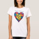 Kvinnans vita t-shirt har en meningsfull design för att öka medvetenheten om autism. Överst visas frasen "Atism Awareness" i ett fet och tydligt teckensnitt. Den centrala grafiken är ett hjärta som består av ett färglöst pussel delarare, som symboliserar mångfalden och särdragen hos individer på autismspektrumet. Inuti hjärtat finns orden "Different Not Lless" på framträdande plats, där man betonar acceptans, integrering och värdet av individer med olika neurologiska egenskaper. Kombinationen av ljusa färger och hjärtligt budskap gör att denna t-shirt både är visuellt tilltalande och ett starkt påstående för stöd för autismförsvar.