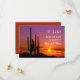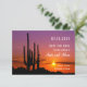 Det här moderna kortet har ett vackert ökenlandskap vid solnedgång. Färgpaletten är varm och inbjudande. Solnedgångstimmen ger en romantisk look. Det här kortet är perfekt för ett bröllop som ska firas i Arizona eller närliggande platser. Är också idealiskt för ett brudpar som är infödda från detta område.