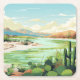 Öken Oas Gröna Strand sjö Underlägg Papper Kvadrat