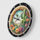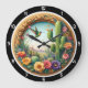 Fånga den livfulla känslan av den höga öknen med Desert Bloom Hummingbird-klockan. Denna fantastiska tidmätare har en högupplöst grafik centrerad kring en strålande, mångfärgad kolibri under flykt. Fågeln är omgiven av en frodig ökenodling, inklusive en hög Saguaro-kaktus, olika suckulenter och en färgrik samling blommande ökenblommor i nyanser av korall, bärnsten och djup violett. Scenen är placerad inom en vacker, detaljerad och utsirad cirkulär träram som ger en glimt av avlägsna platåberg under en mjuk himmel. Medan konstverket mästerligt härmar de dimensionella texturerna av handskuret trä och oljemålad duk, är detta en slitstark högupplöst grafisk applik