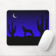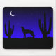 En fantastisk digital konst med en natt-ökenscen med kaktusar och en koyotäcka i måne.