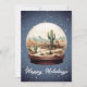Unikt julkort med en ökenscen i en snöglob på en stjärnklar natthimmel med anpassningsbar text.