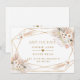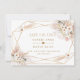 Elegant kortdesign med akvarell ökenvita rosor, pampasgräs, falskt guldram, på vit bakgrund. Använd verktyget Anpassa för att lägga till din information. För matchande föremål, besök min Ökenvita Rosor Guld Kollektion.