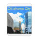 Fridge magnet med en vacker Oklahoma City skyline med kloka moln och vackra blå himmel. Gultens text kompletterar den bild som innehåller flera välkända byggnad enligt Oklahomas konstmuseum