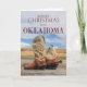 Ett vackert himlar med moln som dansar igenom är bakgrunden till det spektakulära westernare fotografiet på framsidan av detta Helgdag kort. De här bärgade cowboystövlarna sporterar ett par anpassningsbar som gjort mexikanska pesosporrar, kompletta med"Yeha"-bokstäver och läderband. Den röda texten på toppen säger "God jul från Oklahoma", där OKLAHOMA är gjord av en röd och svart buffel plaid mönster. Inuti kortet finns fält för att anpassa till vad du vill.