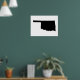 Oklahomas form i svartvitt. Du kan ändra bakgrunden till färg eller lägga till ett anpassningsbar souvenir-textmeddelande.
