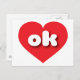 Det här vykortet har ett pulserande rött hjärta som innehåller det feta, vita, rundade nedre fodral brev ok, en lekfull förkortning för Oklahoma, ju tidigare tillstånd.