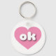 Den här nyckelkedjan har en lugn, coola rosa hjärta som innehåller det feta, rundade, vita nedre brev ok, en lekfull förkortning för Oklahoma, det tidigare tillståndet.