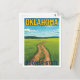 Capture the pioneering spirit of the Sooner State with this eye-catching vintage-style travel poster. The digital illustration features the iconic Oklahoma landscape: a dirt path winding through vast, grassy plains under a bright, blue sky. The retro, mid-century travel art aesthetic makes it a perfect piece of wall decor or a unique souvenir. Whether you're an Okie proud of your state or simply love the classic WPA poster style, this design brings a nostalgic, warm feel to any product.