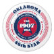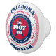 Dekorera ditt hem eller företag med den här unika keramiska knoppen som har en röd, vit och blå cirkelformad typografi med fakta om USA:s tillstånd Oklahoma. Det blev en stat 1907 och är den 46:e stjärnan. Dess huvudstad är Oklahoma City, och förkortningen är OK. Andra intressanta fakta är dess region, zona tidskoordinater, geografiska koordinater och namn.