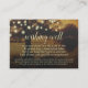 Detta vackra bröllop-kort är ett smakfullt sätt att be era gäster om pengar eller pengarar i stället för presenter. Eleganten har ett vackert, rustiskt träd täckt med ljus i gulbrun nyans. Titeln lyder "Wishing well" med en söt dikt: När vi börjar med vårt nya liv som Mr. Och fru, vi har redan ett hus med fullt, men om ni vill ge oss ge en present skulle en gåva från några pengarar vara så trevlig! Det finns plats i grund för en kort-not.