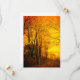 Kort med John Atkinson Grimshaws målning Oktobertillflöde (1836-1893). En engelsk väg på hösten med fallna löv och träd i det dystra ljuset av himlar i oktober. En viktoriansk kvinna står utanför en mansion. En underbar gåva till fläkt av Romanticism och Victorian England och till dem med mörkrets böjda känslor.