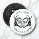 Höj glaset för evigt med denna oförglömliga flasköppnare med texten ”Till Death Do Us Part”. Med två skelett-händer som formar ett hjärta runt elegant gotisk skrift, är denna djärva svart-vita design personlig med era namn och bröllopsdatum.