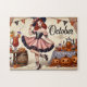 Retro Pin-Up Girl Jigszawa Puzzle, Vintage Halloween Witch Art, Festive Fall Puzzle Den här bilden har en charming pin-up-tjej utklädd som en häxa, som ger uppspelning i en festlig Halloween-uppställning med pumpor, potioner och säsong-dekorationer. Hennes fantastiska leende och elegant fånga roligten och magin från oktober och frammana en vintage Halloween-anda med nostalgiskt flust.
