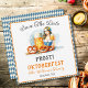 Den här livliga AI-teckningen visar en ölstein med sötsaker bredvid en kvinna i en traditionell tysk Dirndl, skapar den perfekt Oktoberfesten spara datumet. Bakgrunden och gräns är den bayerska flagga mönster, som ger en verklig beröring. Anpassa enkelt informationen om party genom att klicka på personligens blå knapp.
