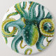 Oktopus Grönt Tentacles Vattenfärgsbild Knapp