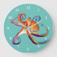 Oktopus sjöliv - vattenfärgskonst stor klocka