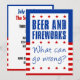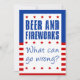 Öl och fyrverkerier - Vad kan gå fel? rolig inbjudan till en 4 juli-fest. En rolig inbjudan till en självständighetsdagfest med alkohol och fyrverkerier! Röda, vita och blå färger.