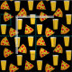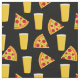 Svart tyg mönstrat med pints öl och skivor pepperoni pizza