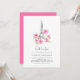 Ola la Eiffel Torn Rosa Blommigt Möhippa Brunch Inbjudningar