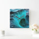 "Ola Tiburón" Blue Shark Wave. En oceanisk canvas-sköld med kerulan färg, som påminner om en haj stigning i en våg fryst i tid.
