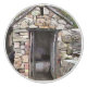 En vattenfärgsdesign av en gammal stuga utomhus eller utomhus, som används före lyxen av inomhusbadrum.