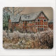 En konstnärlig design av ett vackert gammalt Tudor-byggnad som med ett tomt hus på framsidan och som sitter på en gård på baksidan, på ett mycket kall, frost och täckt av snö.