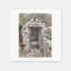En vattenfärgsdesign av en gammal stuga utomhus eller utomhus, som används före lyxen av inomhusbadrum.