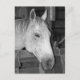 Svartvit foto av en grått-häst som står i en lada i Oklahoma