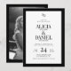 Trendy elegant classy framed refined understated monogrammed retro vintage photo old money sophisticated style wedding invitation featuring a modern contemporary black and white editorial bold typography. ++++++++++ Easy to personalize with your details, monogram name initials, and your engagement photo on the back. ++++++++++ It is suitable for any season chic contemporary formal timeless old money heritage themed weddings. +++++++++++++ Please note that colors of typography, frame, and background can be changed to match your wedding color palette.