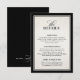 This old money inspired black and ivory wedding details card features a refined serif layout with an elegant script heading and structured information sections. Framed by a bold black border, the design reflects timeless sophistication and traditional black tie style.